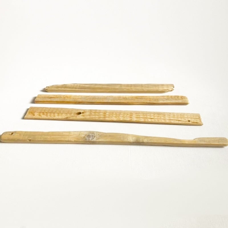 流木を採集後、洗浄→乾燥→ヤスリがけを行なっておりますので、棒や板の流木は手触りの良い状態となっております。